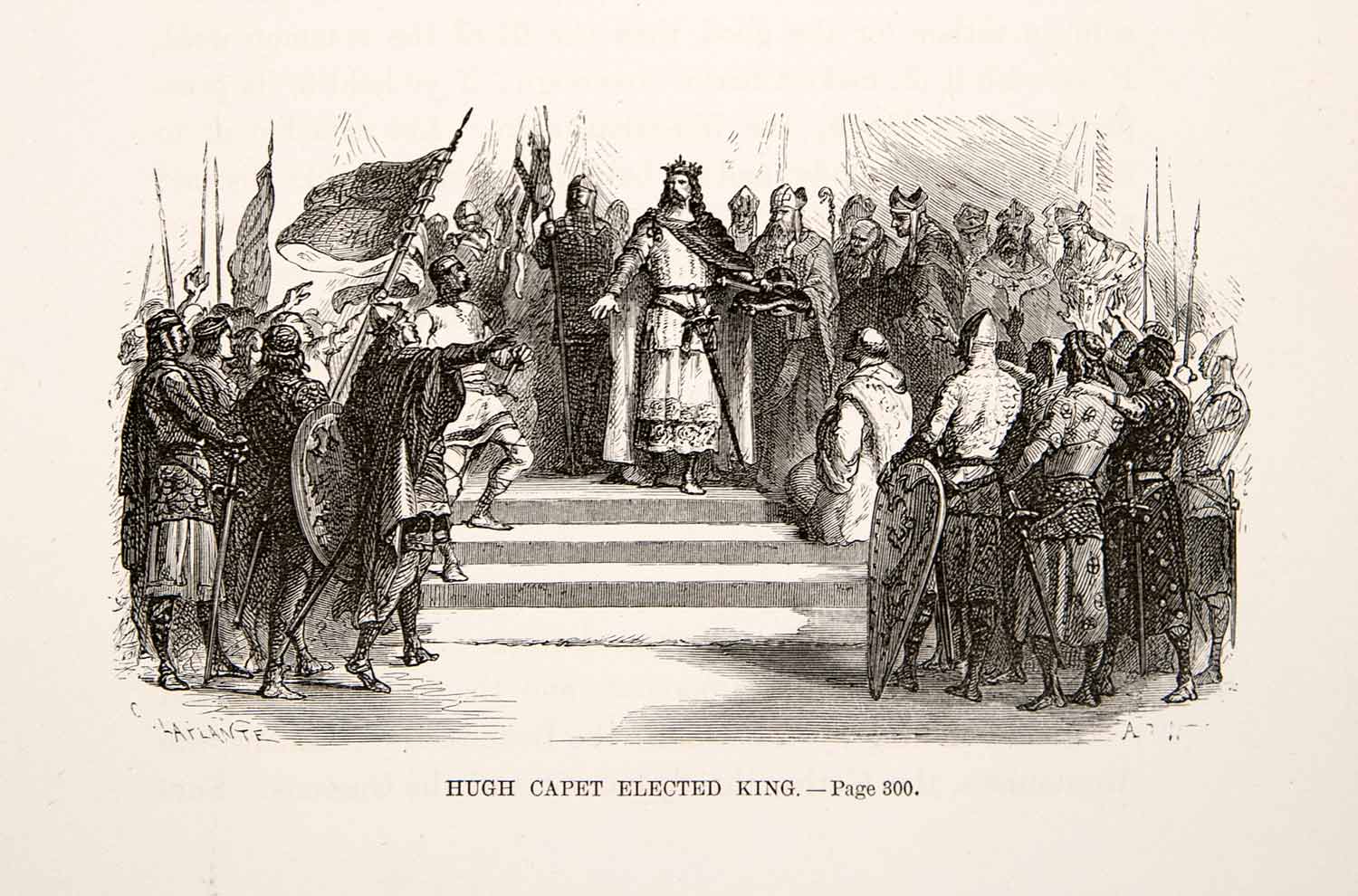 1875 Woodcut Hugh Capet Coronation Knight Noyon Alphonse Neuville Franks XEA6