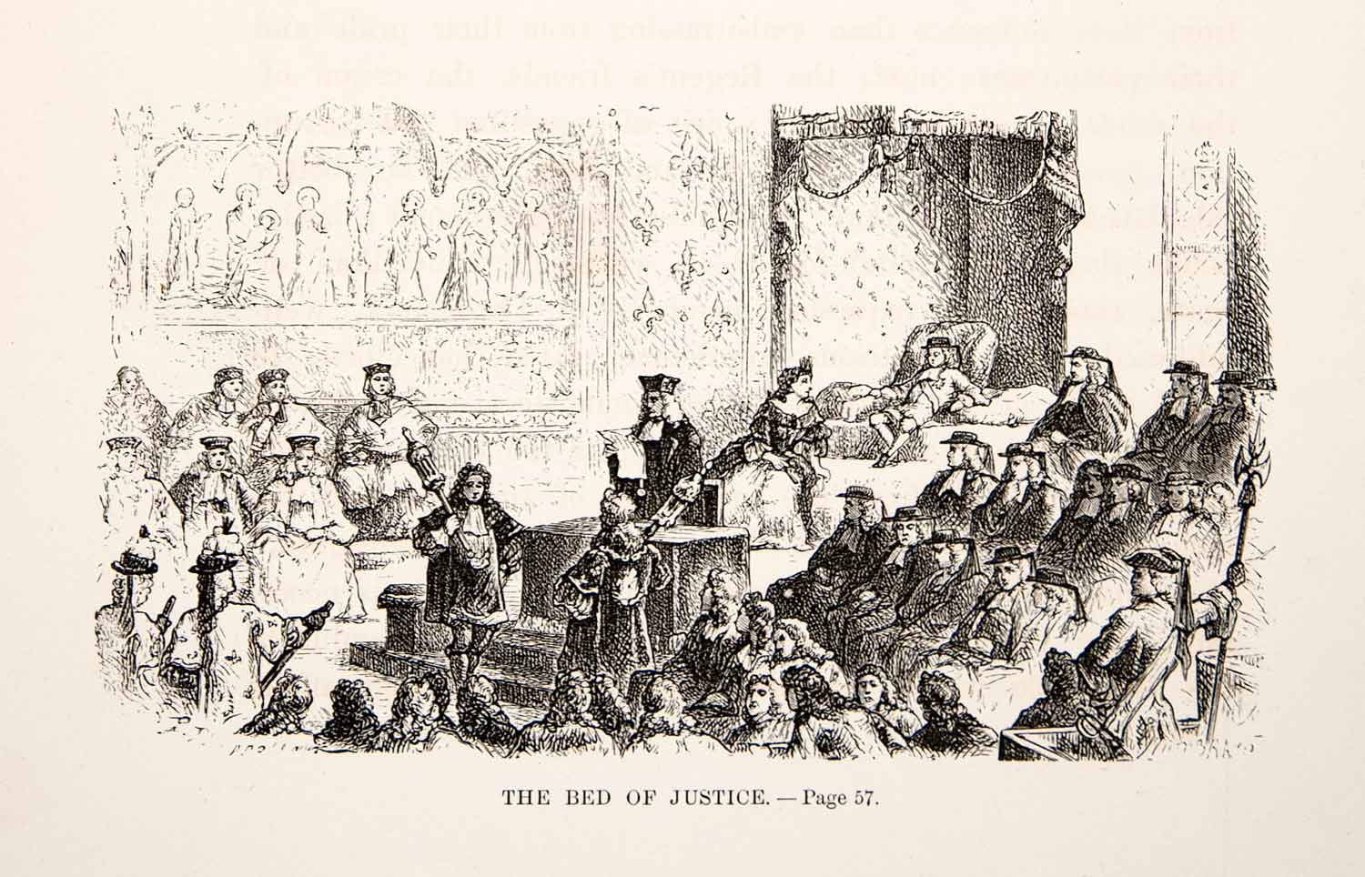 1875 Woodcut Paul Philippoteaux Bed Justice King Louis XV Madame Ventadour XEA6