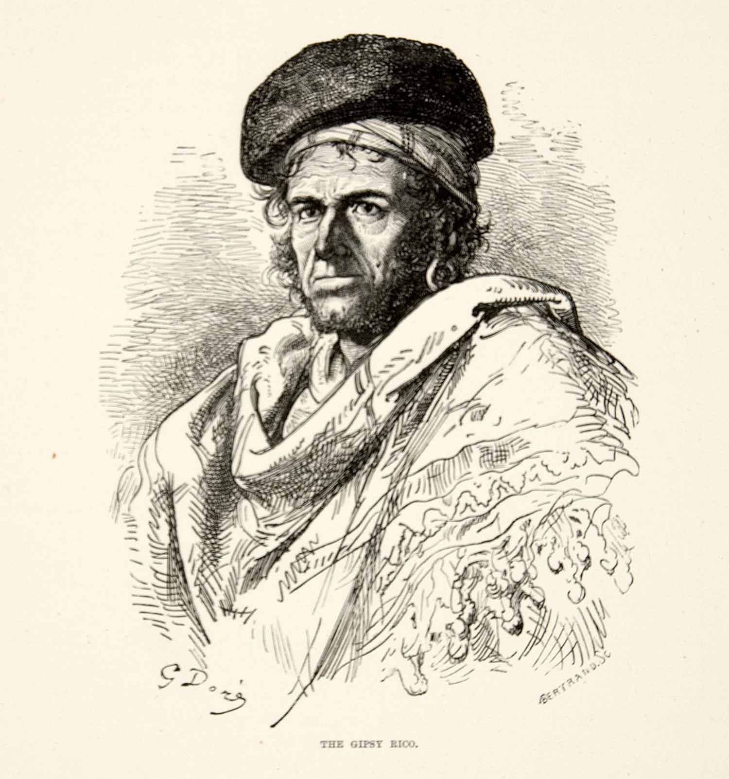 1876 Print Gypsy Gipsy Romani Gitano Spain Portrait Costume Shawl Granada XGJC4