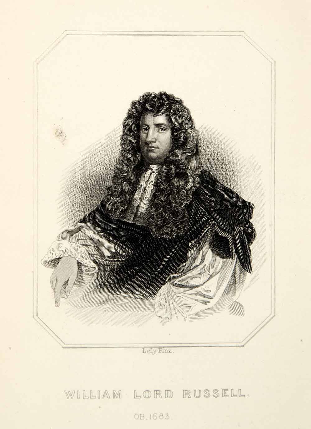This is an original 1876 black and white steel engraving that depicts William Russell (Lord Russell), a prominent 17th century English politician who was known for taking a hard line against the monarchy. He belonged to the Country Party, a conglomerate of Tories and Whigs who professed to have the nation's best interest in heart. Apparently, having James II succeed Charles II was not part of that interest, as the Country Party were among those in support of his eventual arrest for treason and beheading in 1701. However, Russell saw his demise before James did, as the government found out about his involvement in the Rye House Plot to ambush James and Charles and they were not happy. He died in 1683, beheaded for treason.