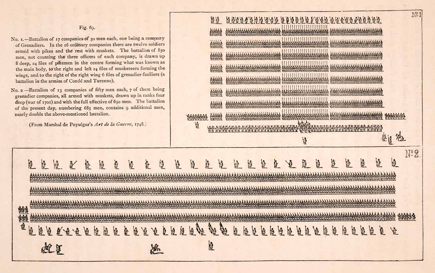 1876 Wood Engraving Army 18th Century French Battalion Diagram Pikemen XGGA9