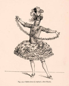 1876 Wood Engraving Ballet Dress Zephyr Martin Costume 18th Century France XGGA9
