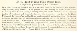 1877 Lithograph JH Letherbrow Art Sword Prince Charles Edward Stuart Weapon ZZ14