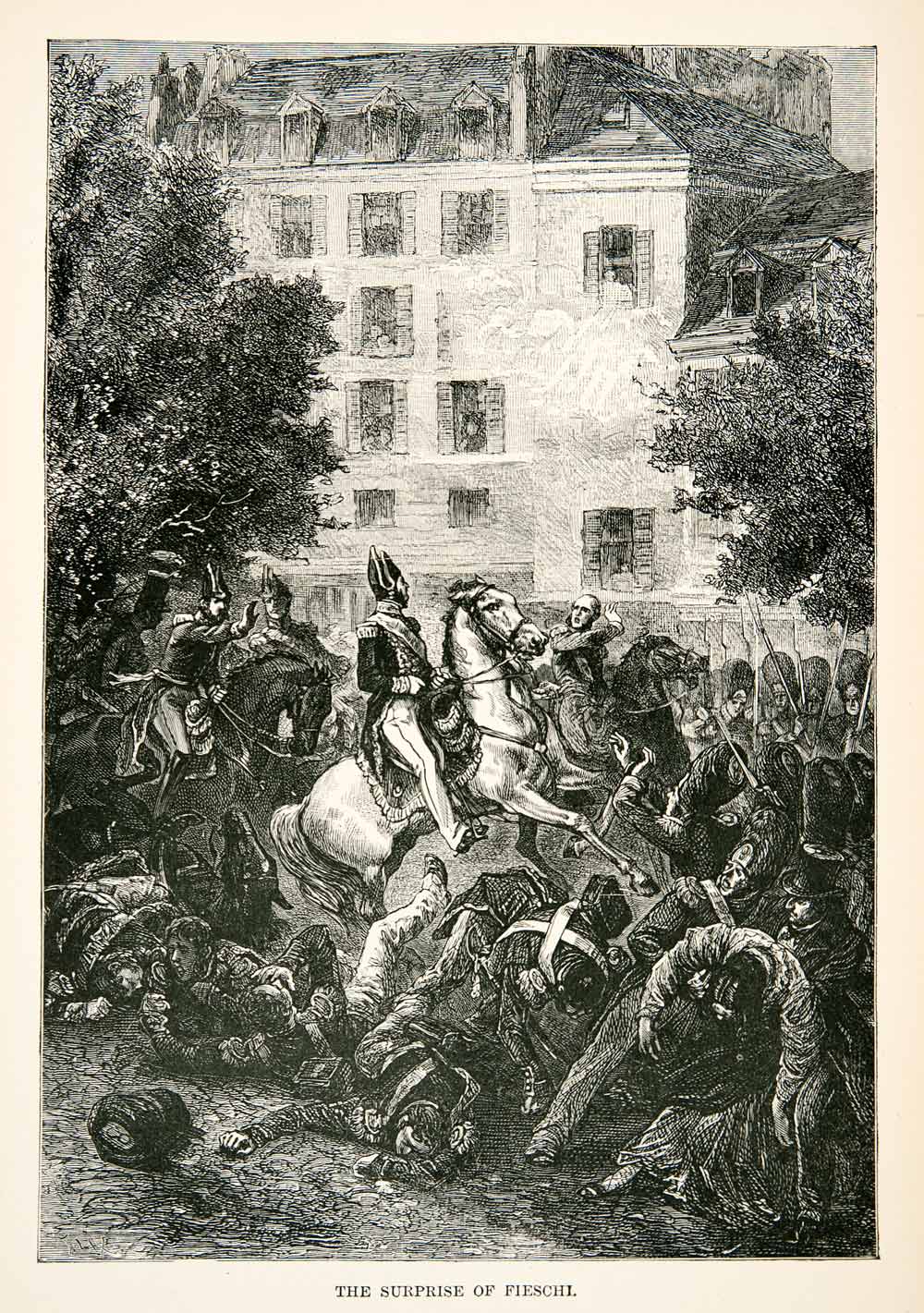1877 Wood Engraving Battle French Guiseppe Marco Fieschi Boulevard du XEA7
