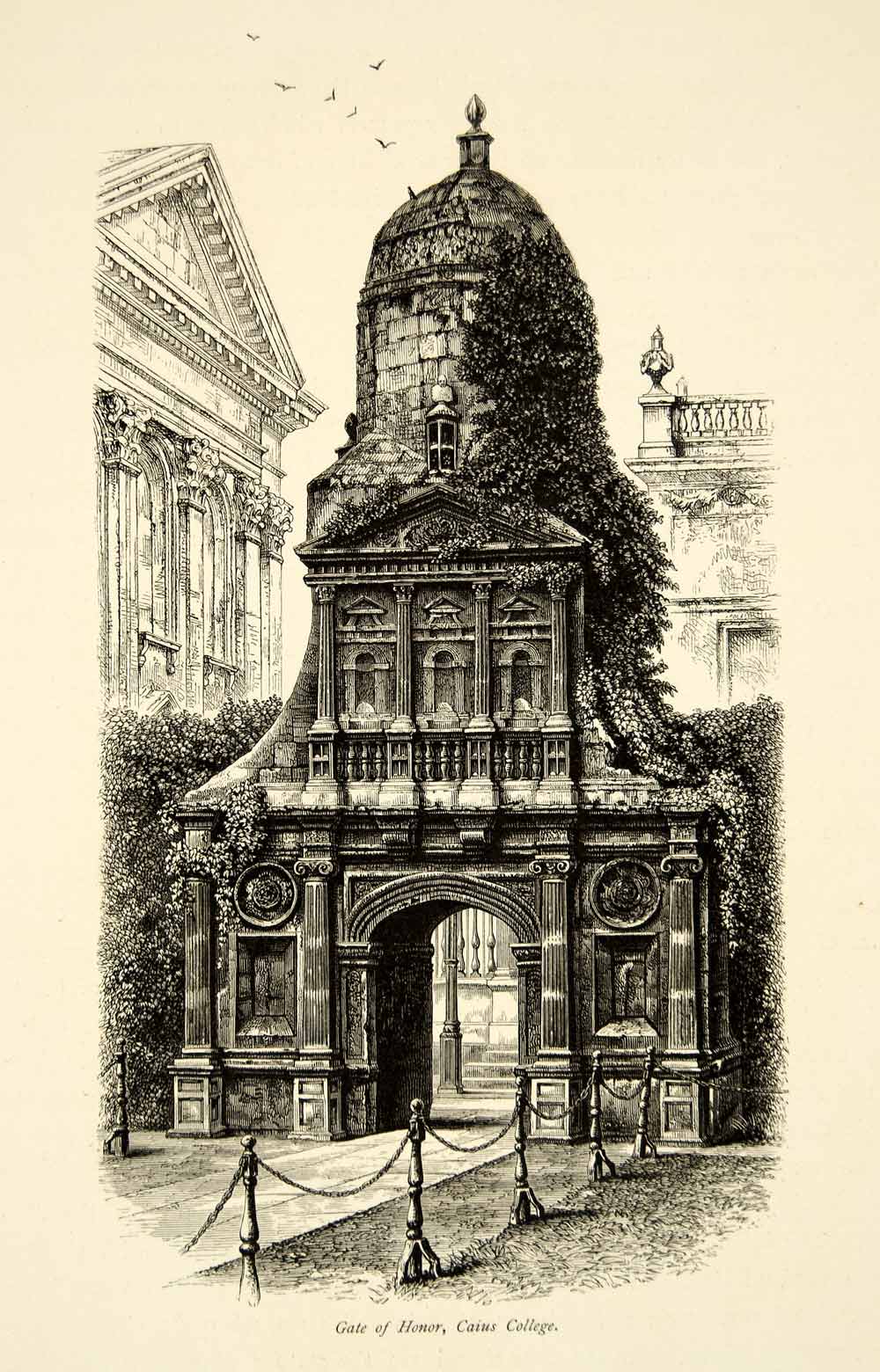 1877 Wood Engraving Gate Honor Gonville Caius College Cambridge England YPE2