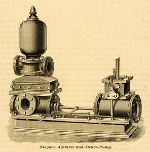 This is an original 1878 halftone print of a Niagara Agitator and Steam-Pump for oil refiners and the petroleum refining business to be used as an agitator or for the pumping of liquids.
