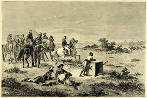 This is an original 1878 black and white wood engraving of Indians antelope hunting. A cheetah can be seen chasing its prey in the distance.