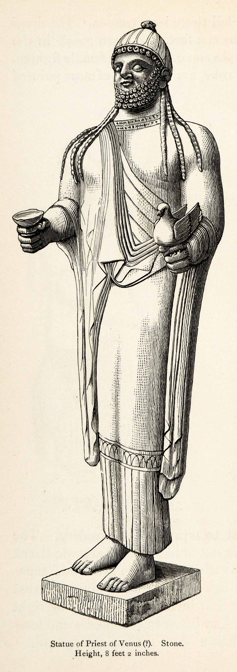 1878 Wood Engraving Cyprus Statue Priest Venus Artifact Sculpture Costume XGS3