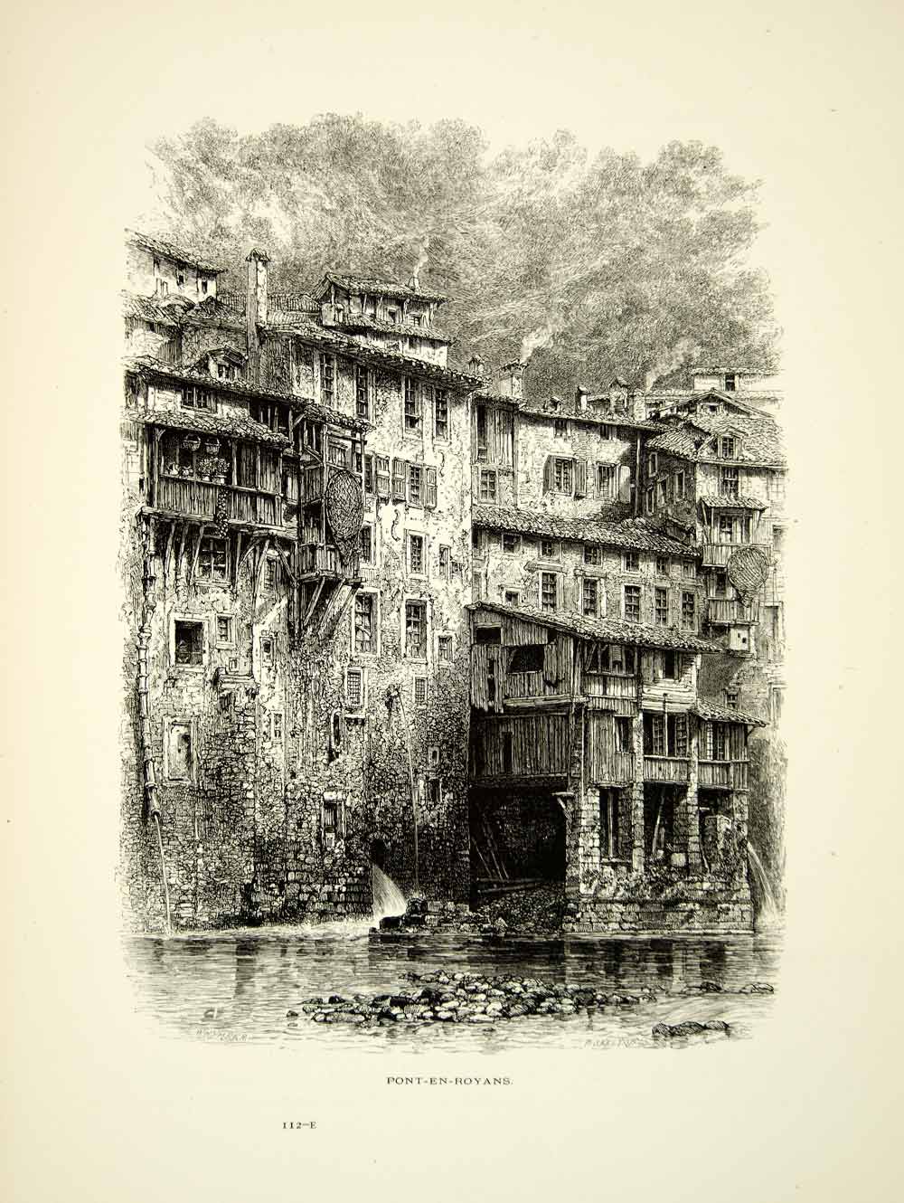 1878 Wood Engraving Edward Whymper Art Pont En Royans France Rhone River YPE3