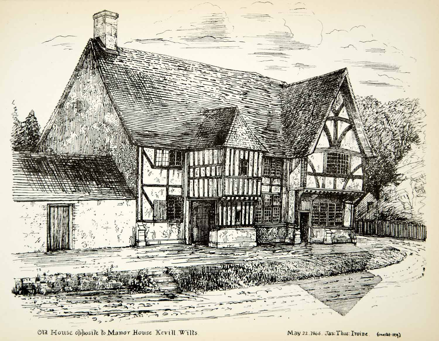 This is an original 1879 black and white lithograph of an illustration by James Thomas Irvine of a 16th century house dating to the reign of King Henry VIII at Keevil in Wiltshire, England.