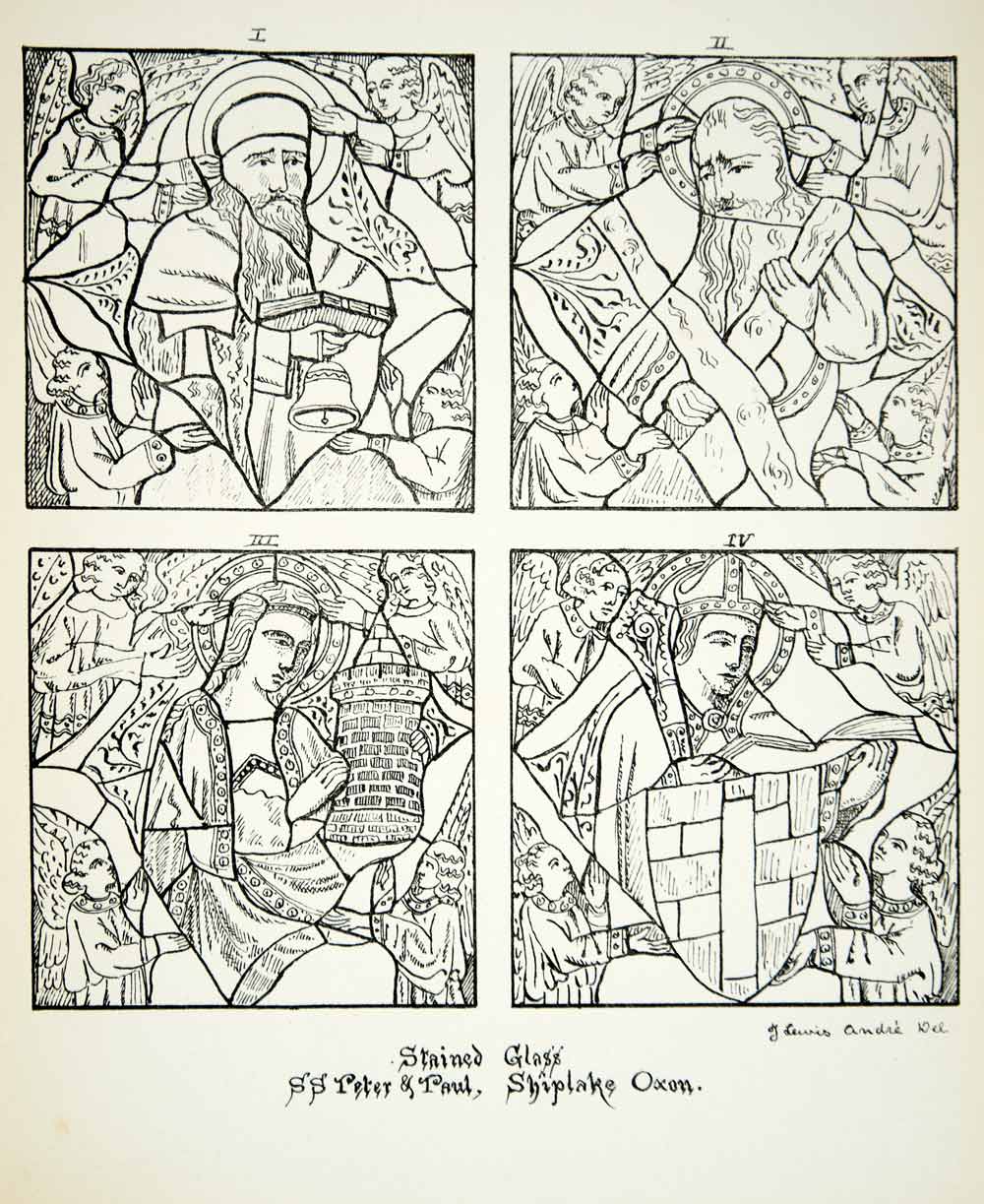 1879 Lithograph Lewis Andre Art Stained Glass Church SS Peter Paul Shiplake ZZ16
