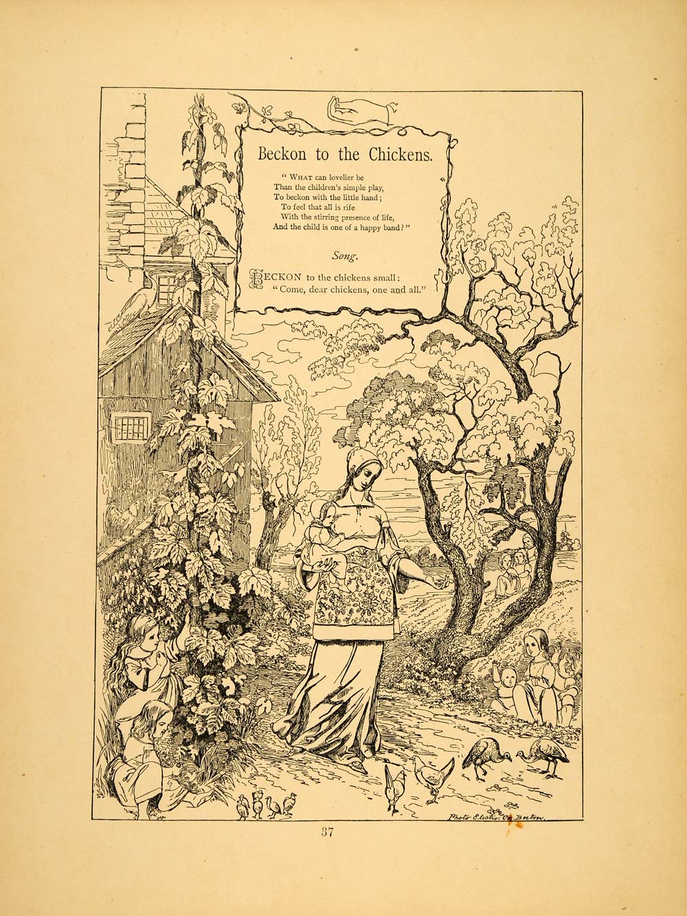 This is an original 1879 halftone print of a charmingly illustrated nursery song from Mother-Play, a collection of verse and mottos by Friedrich Froebel, (1782 -1852), the German educator who created the concept of the "kindergarten."