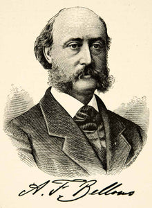 This is an original 1879 black and white wood engraving of a portrait of Albert F. Bellows. Bellows was an American landscape painter.