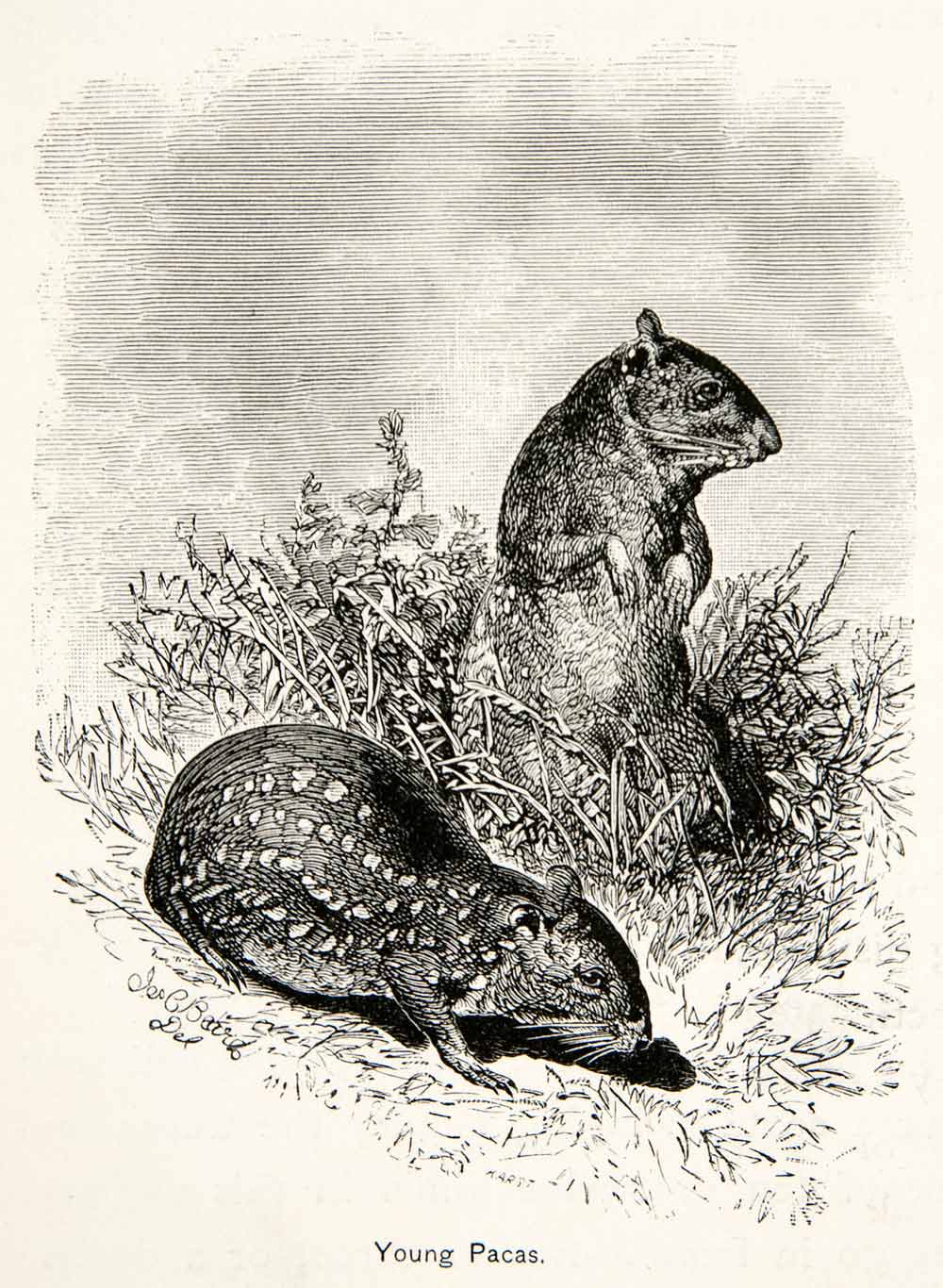 1879 Wood Engraving Nocturnal Paca Wild Animals Brazilian Wildlife XGNB4