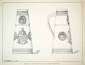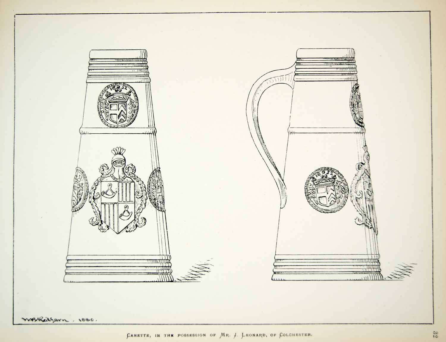 1880 Lithograph WB Redfarn Art English Canette Drink Tankard Cup Household ZZ17