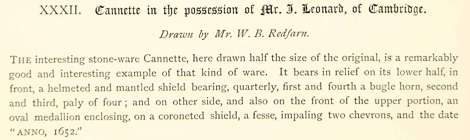 "Cannette in the Possession of Mr. J. Leonard, of Cambridge"