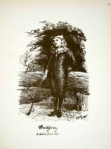 1881 Lithograph HE Grace Art Godfrey William Portrait Child England Fishing ZZ18