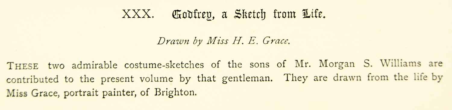 This is an original 1881 black and white lithograph of a drawing by H.E. Grace of Godfrey Williams, son of Morgan S. Williams of England.