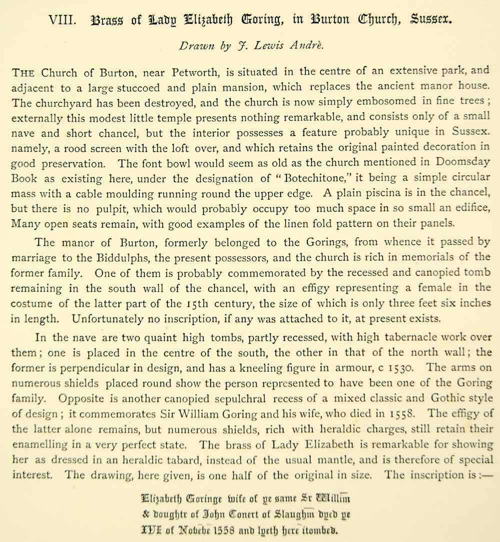 "Brass of Lady Elizabeth Goring, in Burton Church, Sussex"