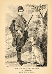 This is an original 1881 halftone print by artist Diego Valazquez, of The Cardinal Infante Don Fernando (Philip IV's younger brother) as a hunter. c. 1632/33. It can be found in the Museo del Prado, Madrid, Spain.