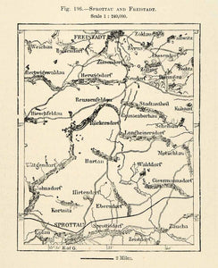This is an original 1882 monochrome relief line-block map of Sprottau and Freistadt, Germany, as well as surrounding cities.