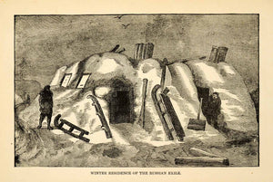 1882 Steel Engraving Winter Residence Russia Siberia Arctic Expedition XGW9