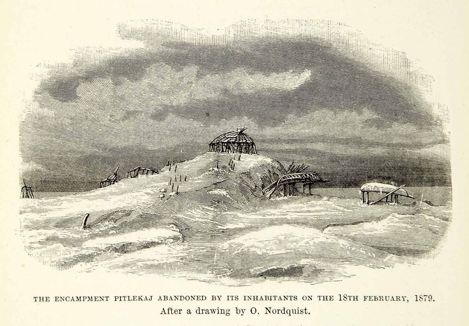 Keywords specific to this image: Indigenous People, Ethnic, Natives, Tribal, Cultural, Village, Settlement, Arctic, Polar, Tundra, Snow, Ice, Winter, Cold, Coast, Shore, Canoe, Boat, Wooden, Frame, Structure, Construction, Building, Chum, Yurt, Landscape, Rural, Countryside, Derelict, O. Nordquist