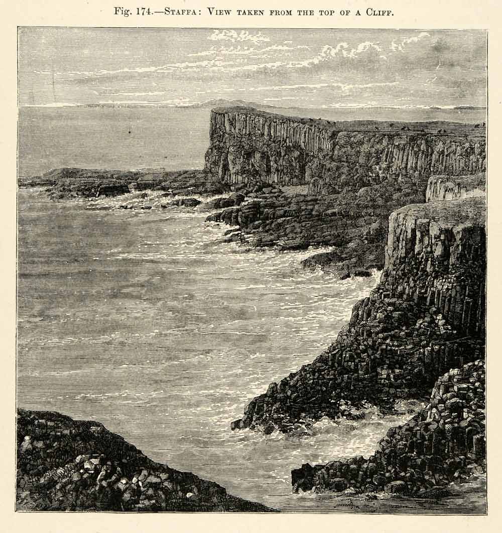 This is an original 1882 monochrome wood engraving of a typical coastline of the Scottish Hebrides Island chain.