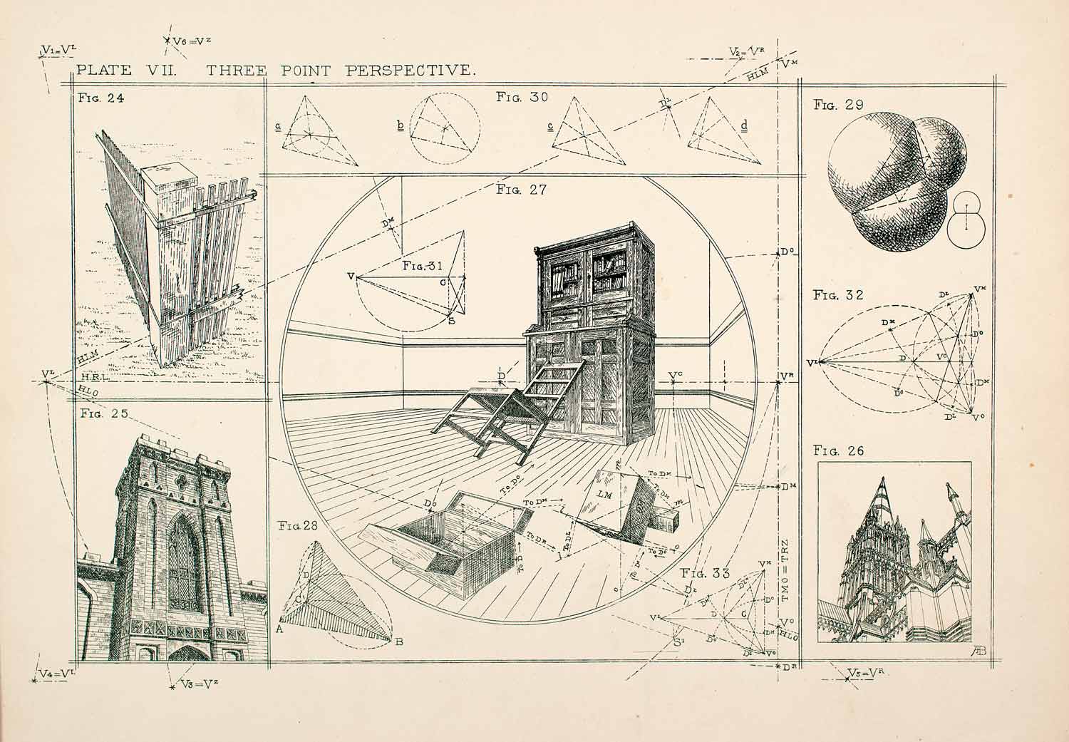 1882 Wood Engraving Three Point Perspective William Robert Ware Architect XDC3