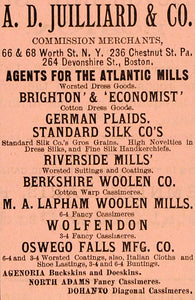 1883 Ad A. D. Juilliard Dress Clothing Cloth Fabric - ORIGINAL ADVERTISING GROC1
