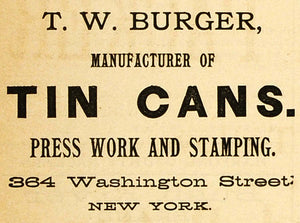1883 Ad T. W. Burger Tin Can Canning Food Grocery Stamp - ORIGINAL GROC1