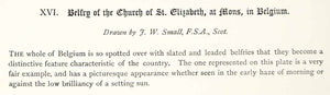 1883 Lithograph John W Small Art Belfry Church St Elizabeth Mons Belgium ZZ20