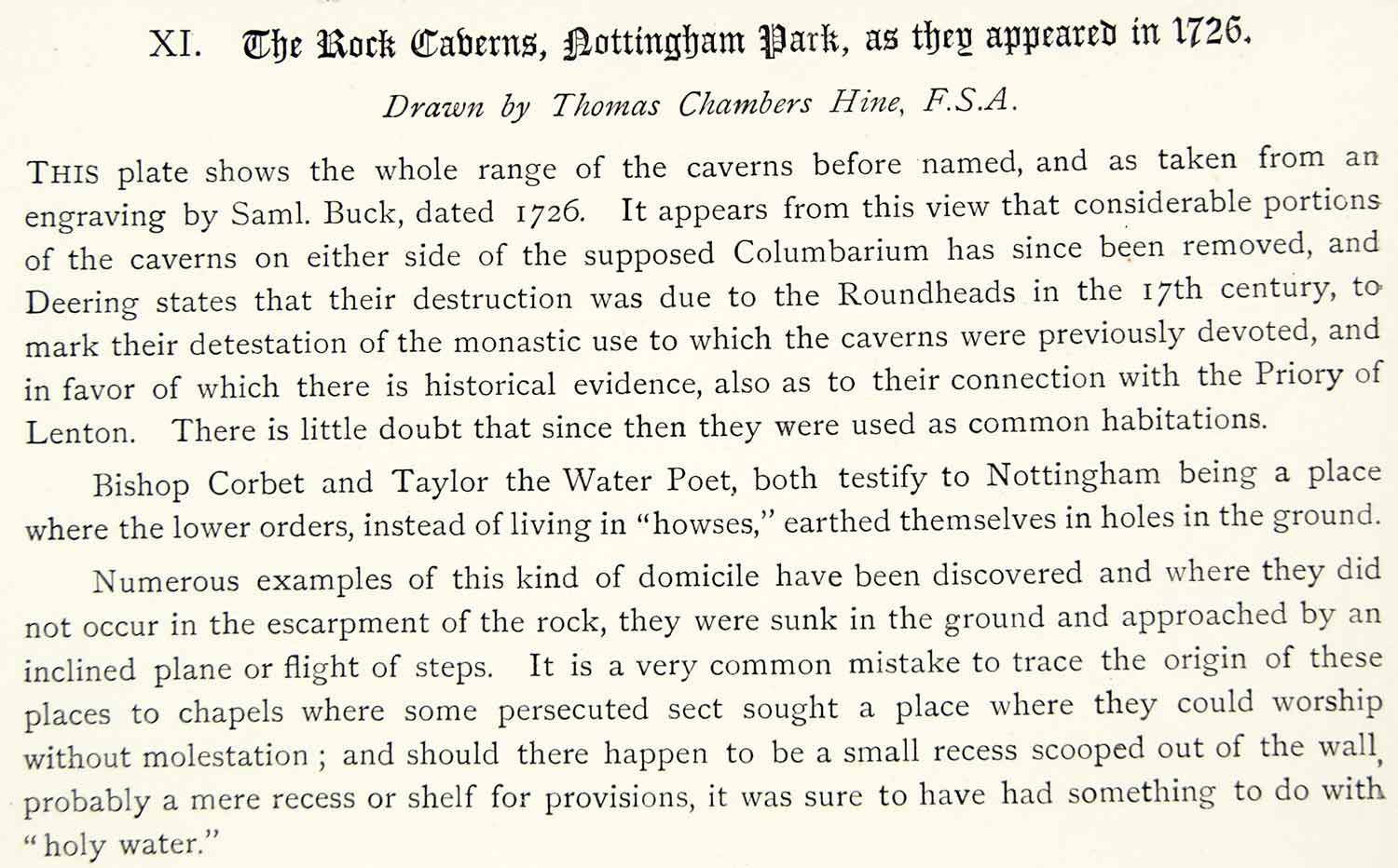 "The Rock Caverns, Nottingham Park, as they appeared in 1726"