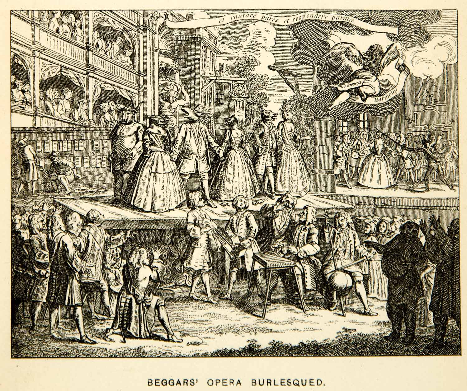 This is an original 1883 black and white photolithograph of a etching by William Hogarth (1697-1764) entitled "The Beggar's Opera Burlesqued".