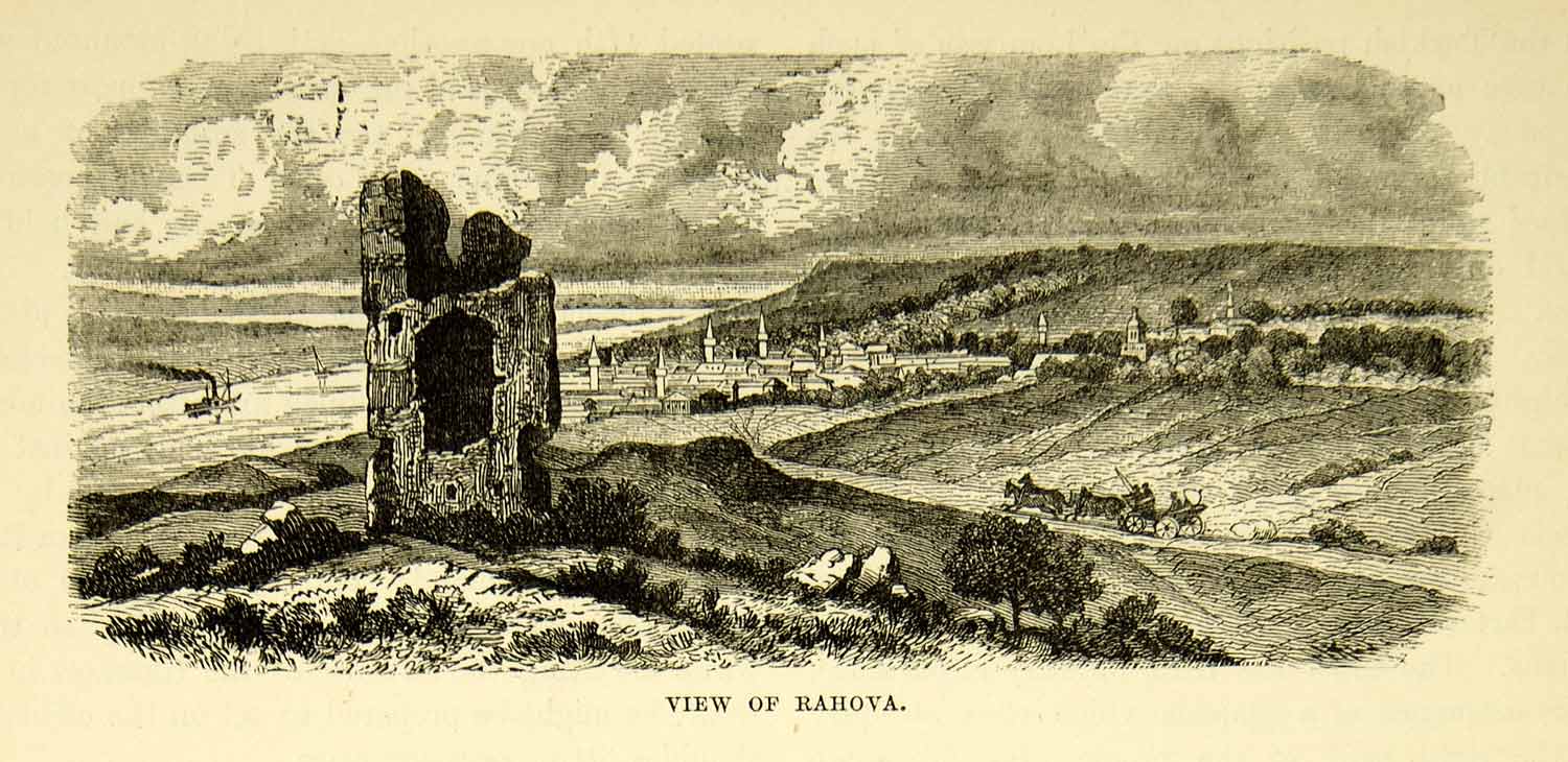 This is an original 1883 black and white in-text wood engraving of Rahovia in Bucharest, Romania shortly after the Romanian War of Independence which would soon be ravaged by war again in the Russo-Turkish War.