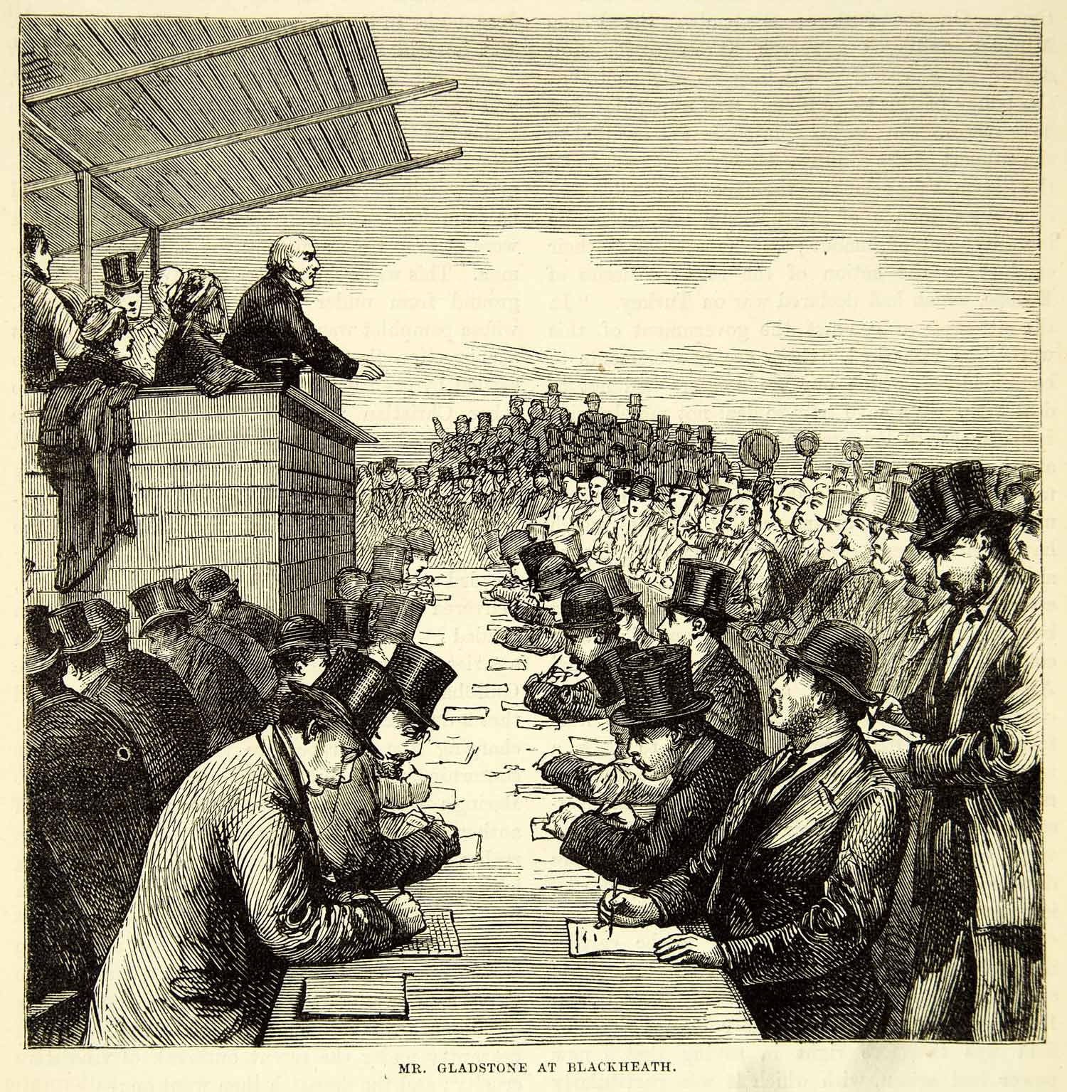 Keywords specific to this image: Speech, Audience, Oration, Assembly, Journalists, Podium, Politician, Statesman, Government, Leader, Europe, Great Britain, England, Public, Meeting, Constituents