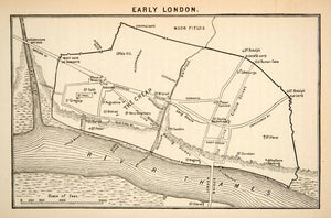This is an original 1884 black and white wood engraved map of Early London, England.