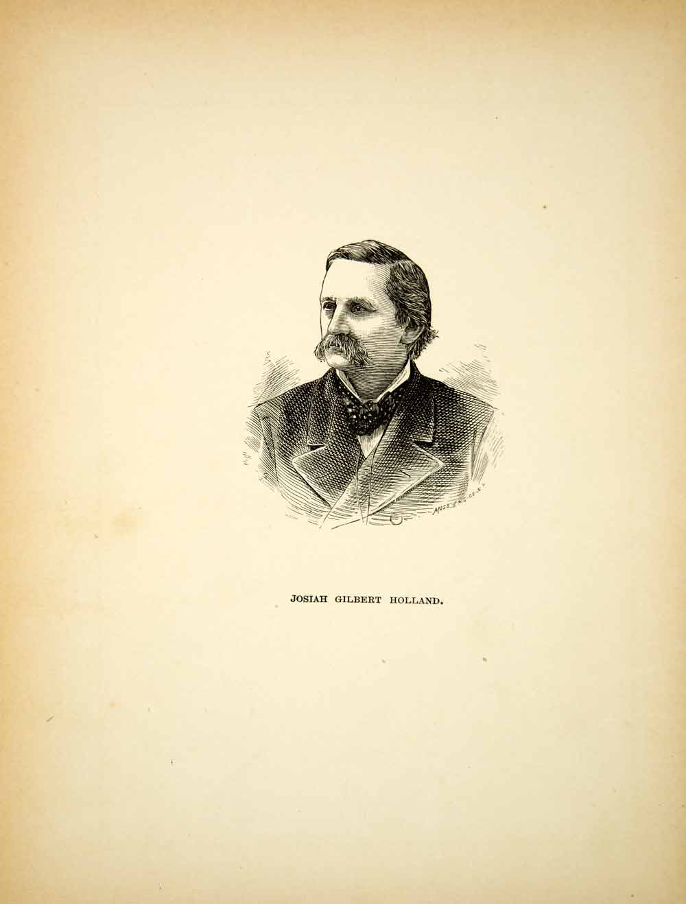 This is an original 1885 black and white wood engraving of the American poet and novelist, Josiah Gilbert Holland (1819-1881) who also wrote under the pen name, Timothy Titcomb.