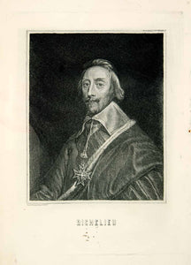 This is an original 1886 monochrome photogravure of Cardinal Richelieu, a close personal advisor to King Louis XIII of France. With his help, the French crown established itself as an absolute monarchy, and successfully was able to overcome the Habsburgs during the Thirty Years' War.