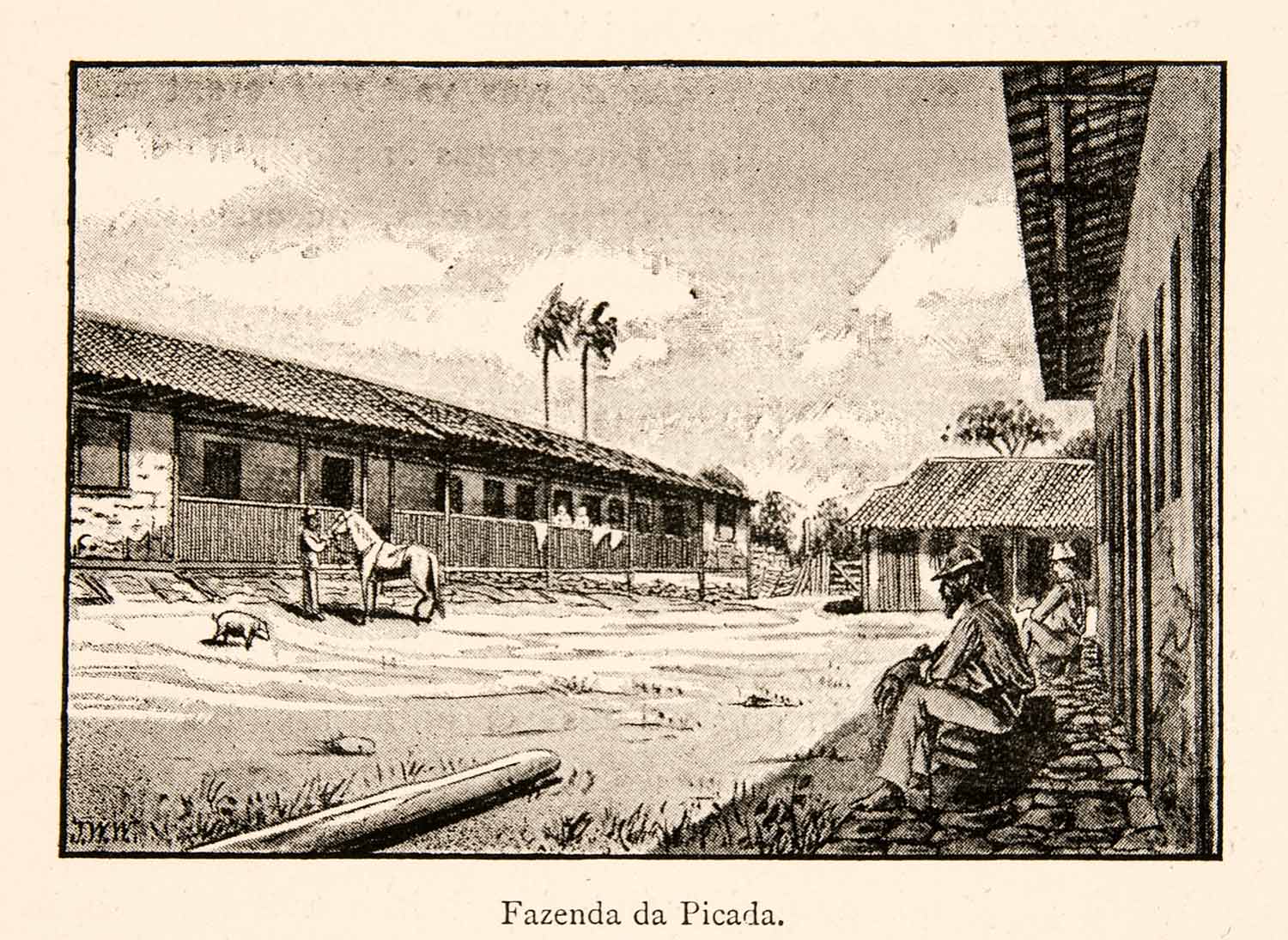 This is an original 1886 black and white halftone print of the Fazenda da Picada in Brazil.