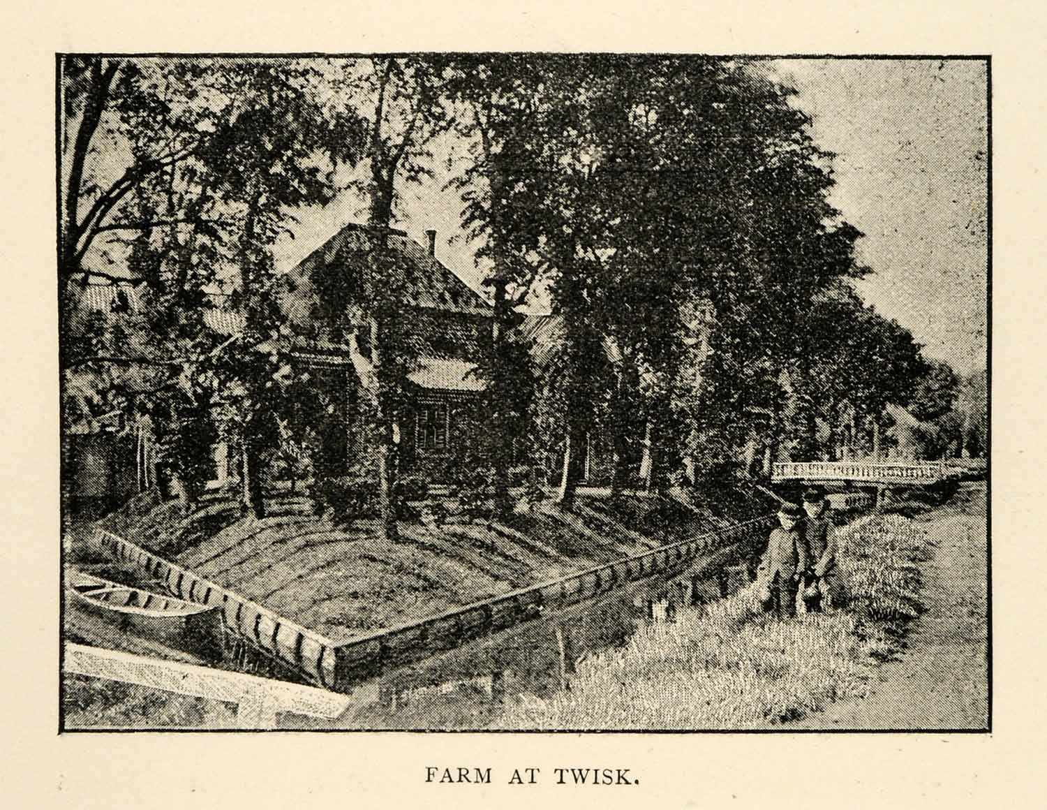 This is an original 1886 halftone print of a farm at Twisk, a village in the province of North Holland, Netherlands.