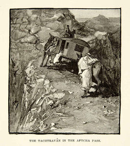 1886 Wood Engraving Photoxylograph Tachtravan Aftcha Pass Persia Iran XGAF5