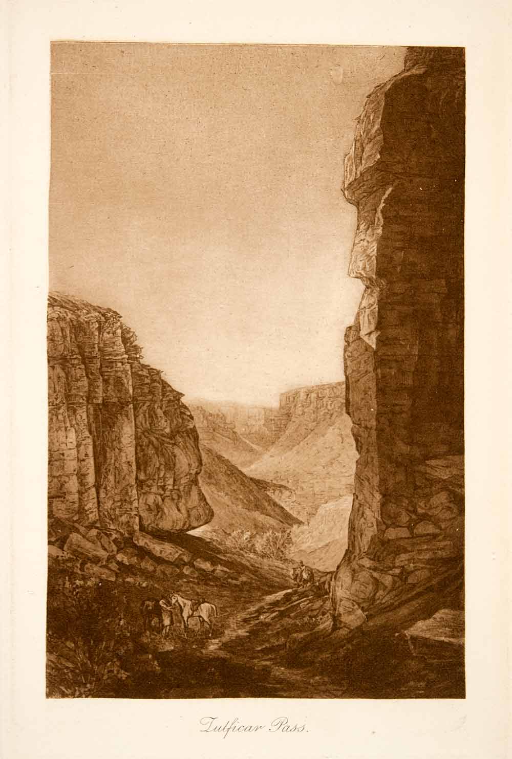 This is an original 1887 sepia photogravure of the Zulfikar Pass through the desert canyon regions of Afghanistan.