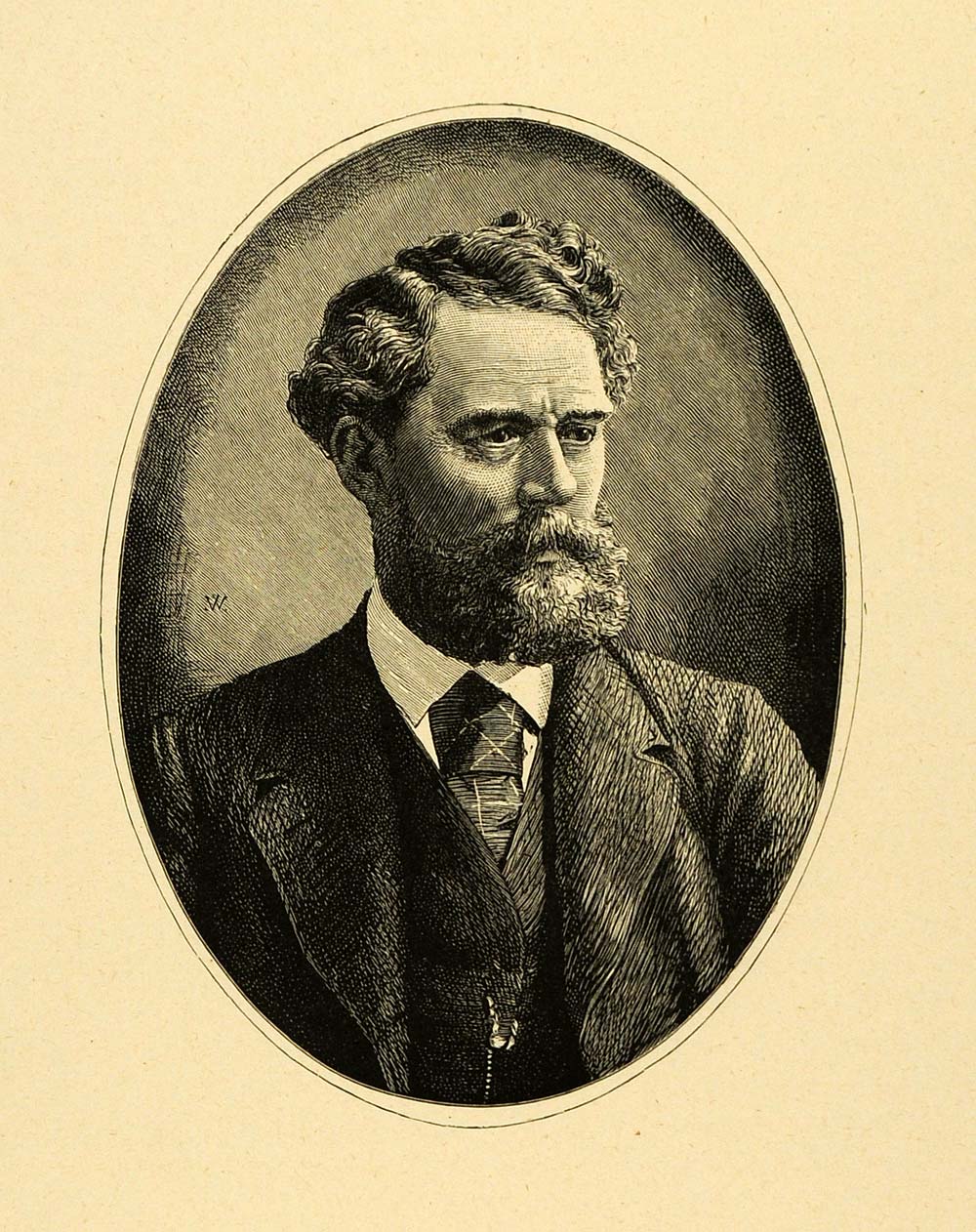 This is an original 1887 black and white wood engraving of Benjamin Vautier, the Swiss artist. Vautier attended the Academy of Arts in Düsseldorf, Germany, beginning in 1850, and is remembered for his depictions of farmers.