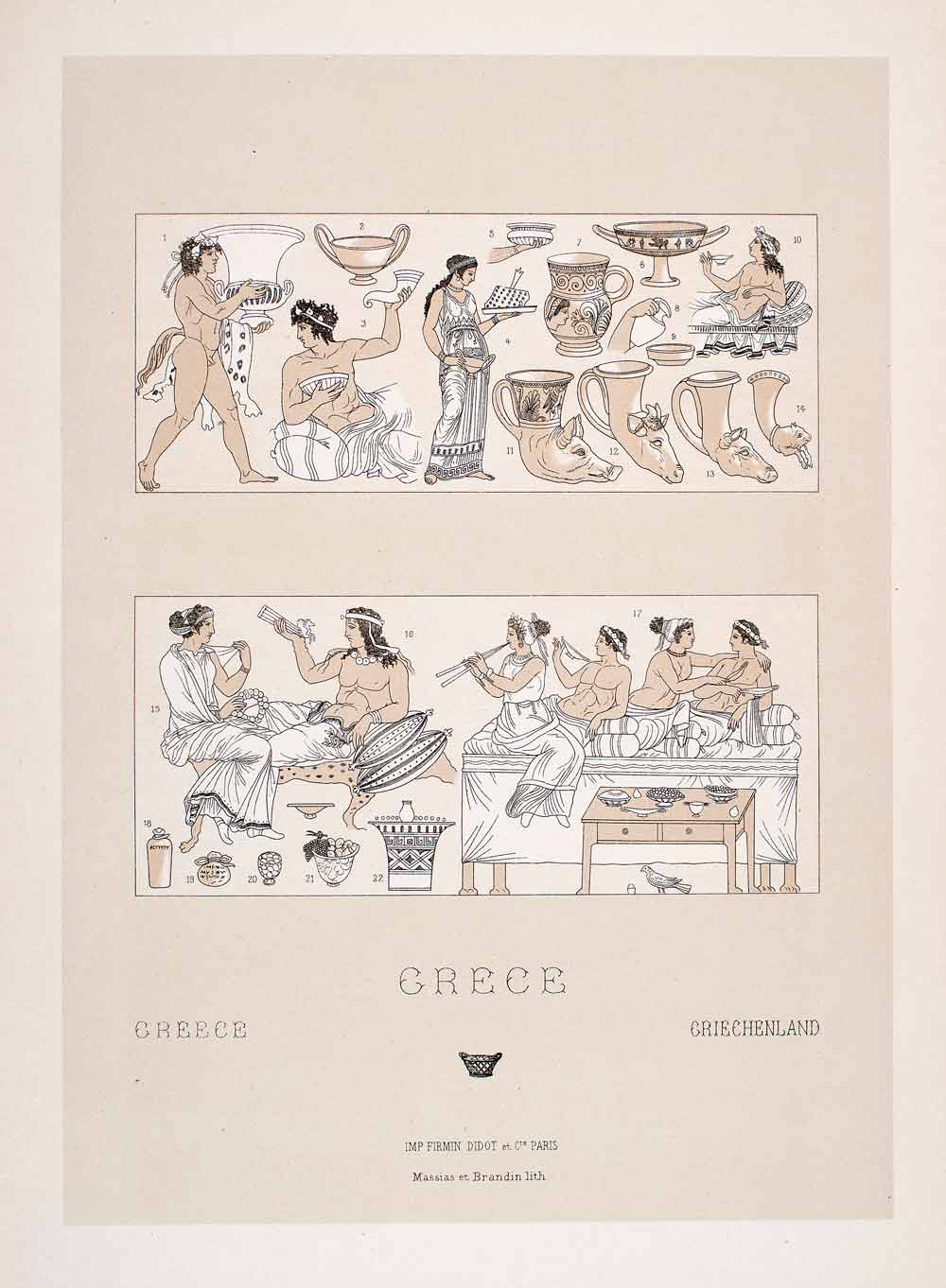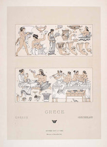 1888 Chromolithograph Ancient Greece Kylix Rython Symposium Nude Ritual LCH1