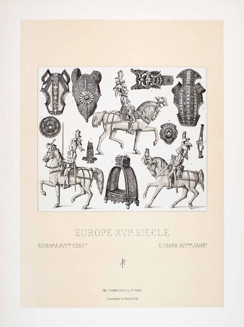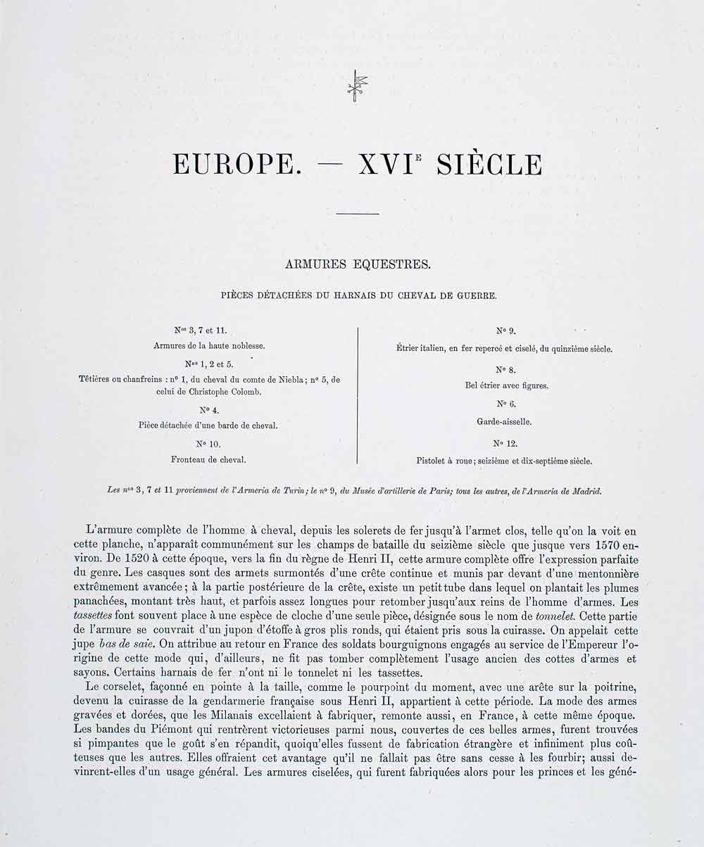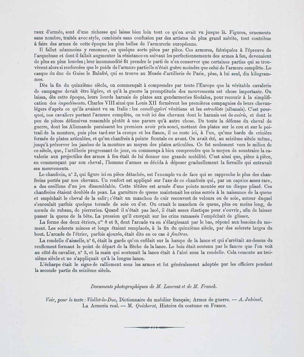 1,2,5. Champrons - 3,7,11. Noblemen - 4. Part of the barding - 6. Underarm guard - 8. Stirrup - 9. Italian stirrup - 10. Peytral - 12. Pistol.