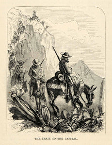 1888 Wood Engraving Trail Capital Road Donkey Horse Burro Caravan Honduras XGU6