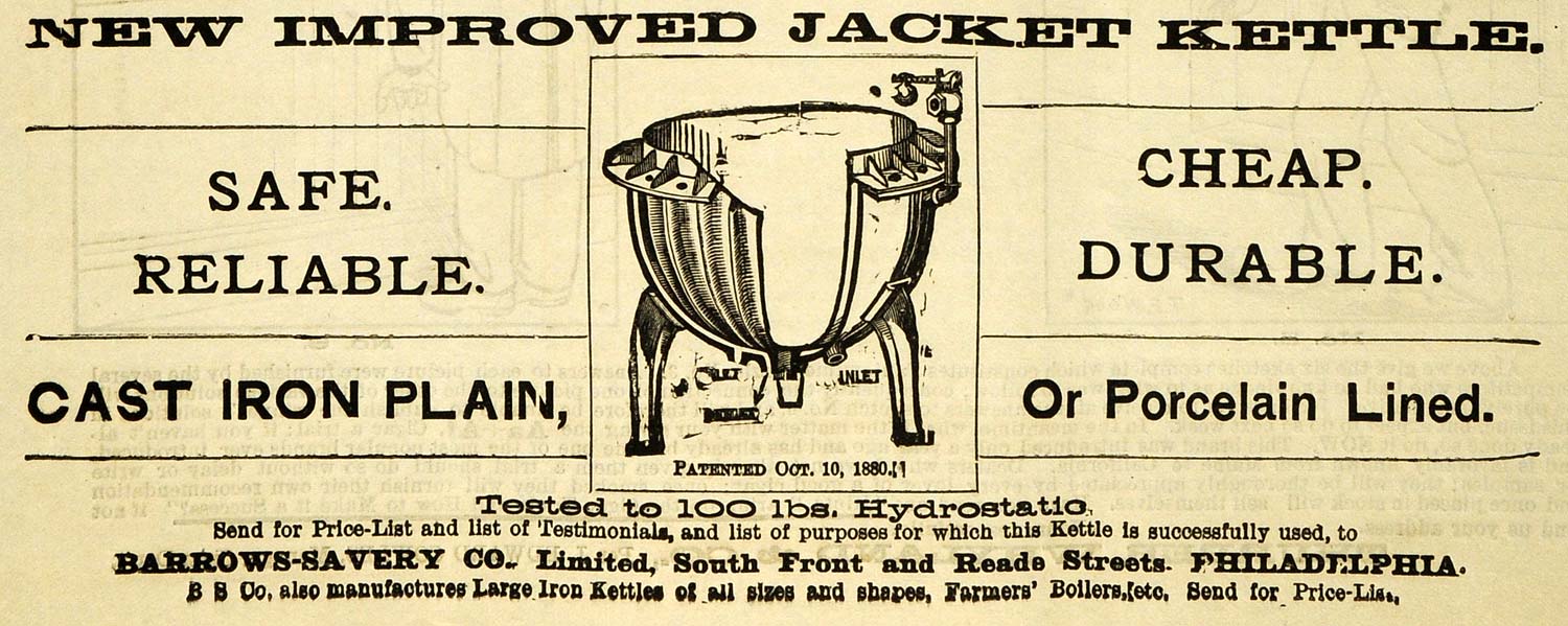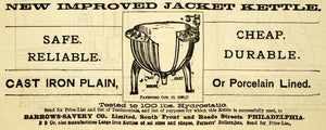1889 Ad Jacket Kettle Porcelain Barrows Savery Iron - ORIGINAL ADVERTISING GROC2