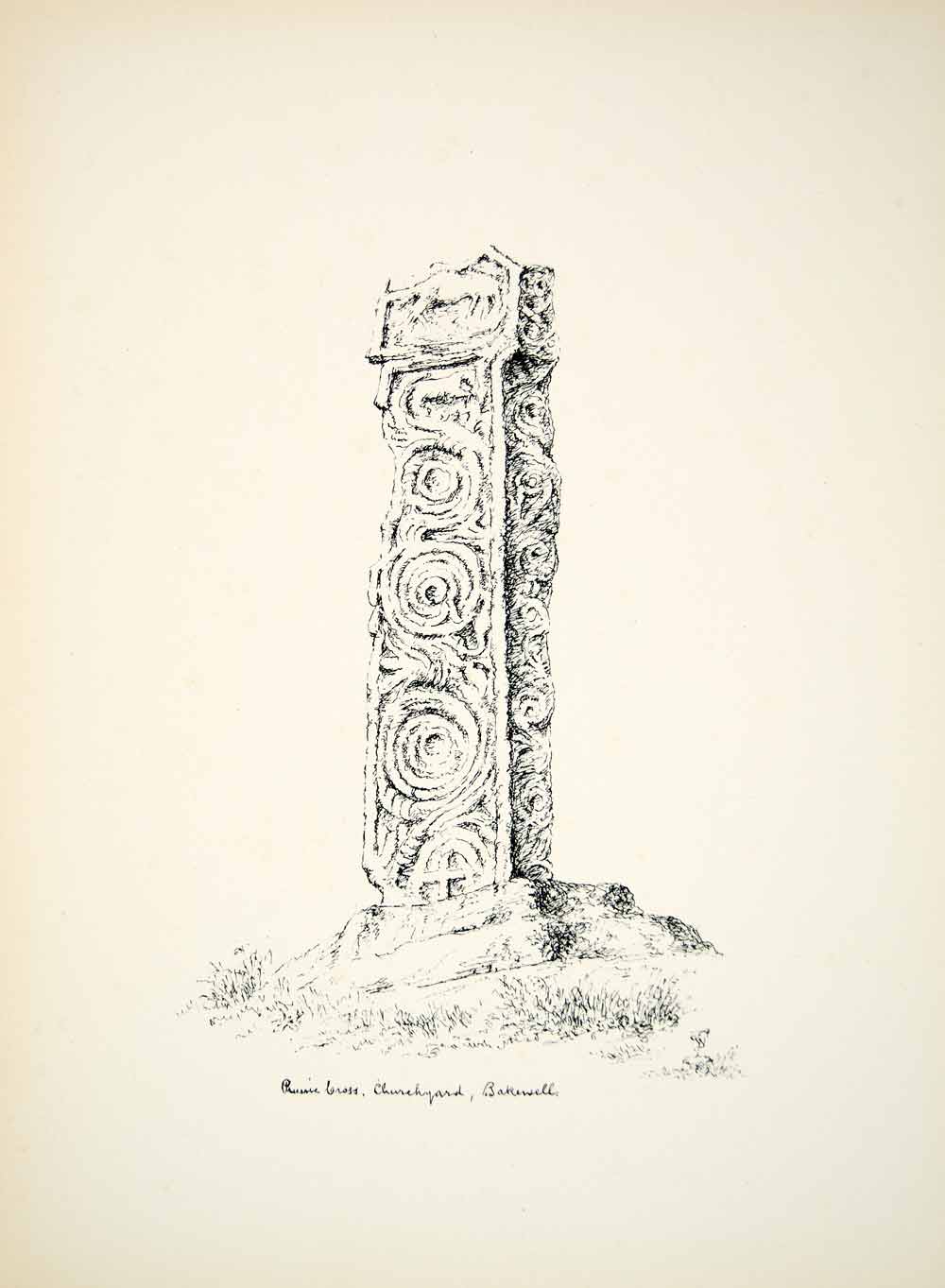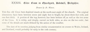 1889 Lithograph D Waters Art Celtic Cross All Saint Church Bakewell England ZZ22