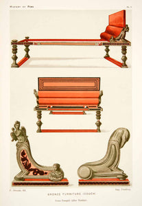 1890 Chromolithograph Ancient Pompeian Bronze Furniture Couch Sofa Decor XHB2